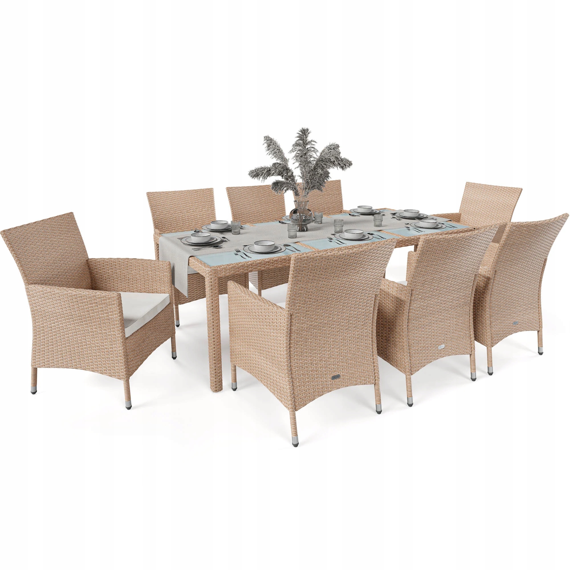 Duży Zestaw Mebli Ogrodowych Komplet Stół Ogrodowy z Krzesłami di volio Kolor beżowy