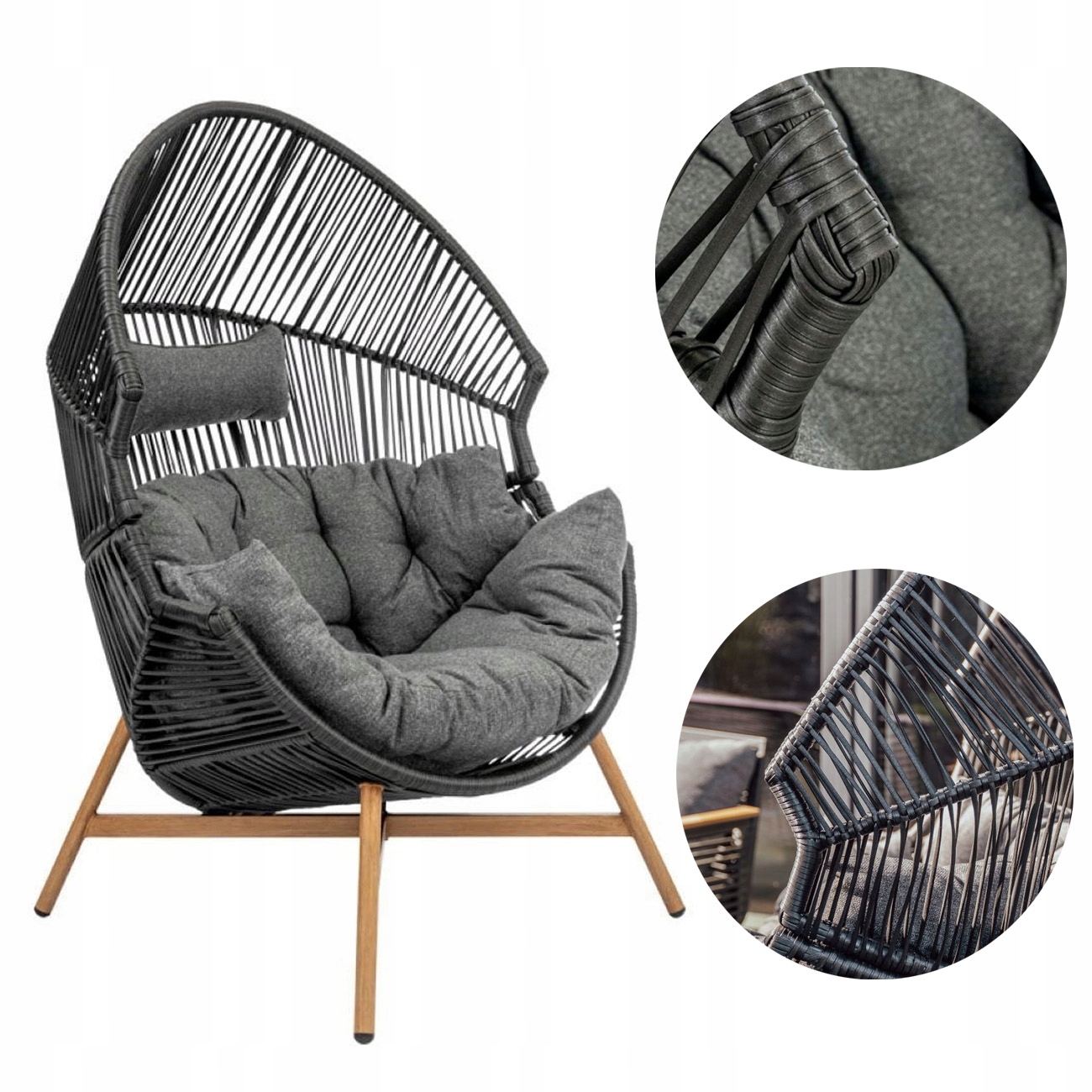 KRZESŁO OGRODOWE KOKON FOTEL Z PODUSZKAMI WYGODNY NA TARAS BALKON DO DOMU