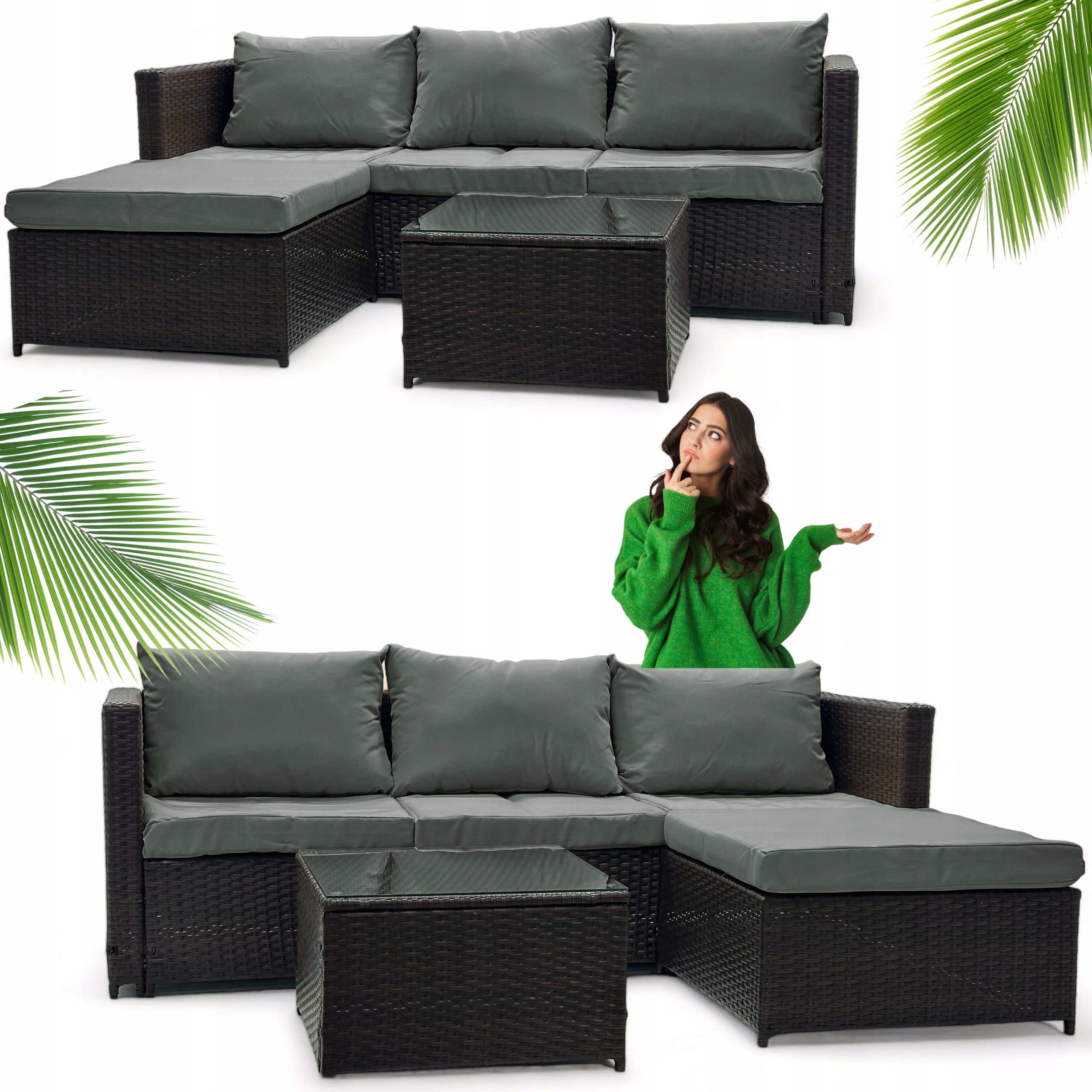 NAROŻNIK OGRODOWY DWUSTRONNY SFS066 MTG ZESTAW MEBLI OGRODOWYCH BRĄZ Zawartość zestawu narożnik stolik